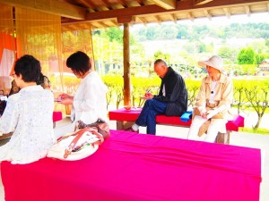 永沢寺ぼたん園茶席 投稿日: 2015年05月03日2015年05月03日 投稿者: 初音会 芳香の漂う鮮やかな牡丹を愛でながら お茶席を致しました 昨年、花しょうぶの茶席でぼたん茶席のお話をさせて頂いた方が 覚えていて下さり楽しみにと明石からお越しくださいました 嬉しい限りです すてきな絵手紙を書いてくださった方、 有難うございまいた