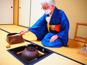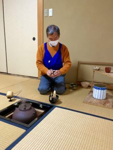 炉開きに 投稿日: 2022年11月27日 投稿者: 初音会 開炉を迎え、たっぷりと撒かれた湿し灰に大きな炭がつがれました。 赤々と燃える炭に立ち上がる湯気はご馳走です。 お善哉でお祝いし、贅沢に寒菊のきんとんもいただいて濃茶を美味しくいただきました。 きれいに掃き清められた石畳にもみじがハラハラと、晩秋ですね。