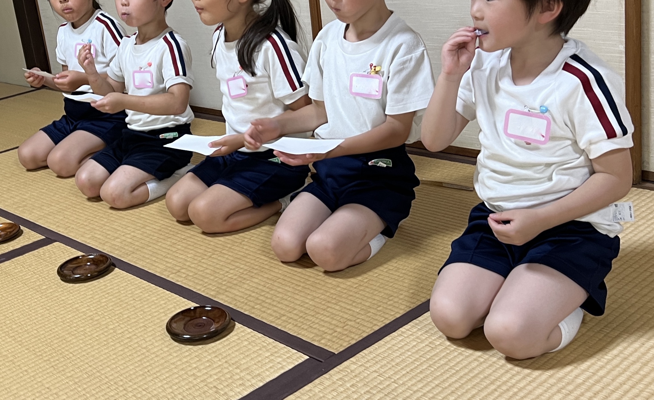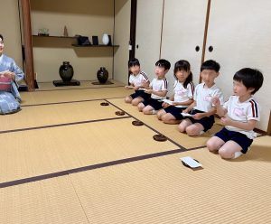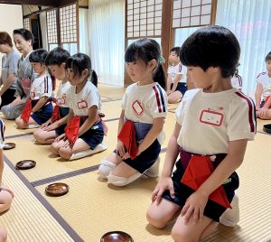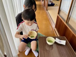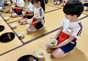 紫陽花のお菓子 投稿日: 2024年07月17日 投稿者: 初音会 6月のお菓子は「あじさい」でした。 4月から3回目のお稽古です。 おすわりの仕方、立ち方、おじぎの仕方、お菓子のいただき方、お茶のいただき方が 少しずつできるようになりました。