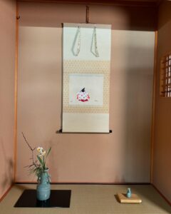 初春の 初子の今日の 玉箒 投稿日: 2026年01月12日 投稿者: 初音会 〜〜〜初春の 初子の今日の 玉箒 手にとるからに ゆらぐ玉の緒〜〜〜(万葉集) (初春の最初の子の日の今日、天皇から賜った玉飾りのついた箒を 手に取るとその玉の緒がゆらゆらと音を立てて揺れているよ) あけましておめでとうございます 本年もよろしくお願い申し上げます 新年を迎え今年も慌ただしく日々が過ぎてしまいましたが お教室の初釜も始まりました 10日にはお家元の初稽古に参列させていただきました しきたりの道喜さんの花びら餅に各服のたっぷりの濃茶 今年も一層の精進を誓いました